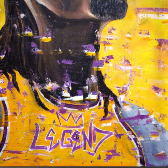 De varme gulfargene og lilla detaljene skaper en følelse av styrke, luksus og storhet, mens kronen over hodet understreker budskapet: ekte legender dør aldri – de lever videre gjennom kultur, musikk og inspirasjon.