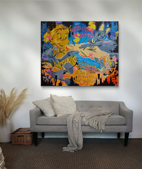Et fargerikt maleri inspirert av pop kultur ikoner Donald og Daisy duck, samt gullgutten Richie Rich. Et originalt maleri som henter inspirasjon i popkunst og egne barndomsminner.